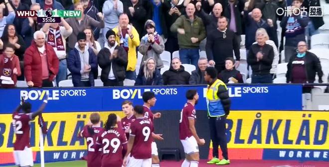 上半場補時階段最后一分鐘,西漢姆聯(lián)右側(cè)一腳挑傳,萬-比薩卡快下傳中,結(jié)果博特曼鏟球解圍不慎將球送進自家大門,西漢姆聯(lián)主場將比分反超。